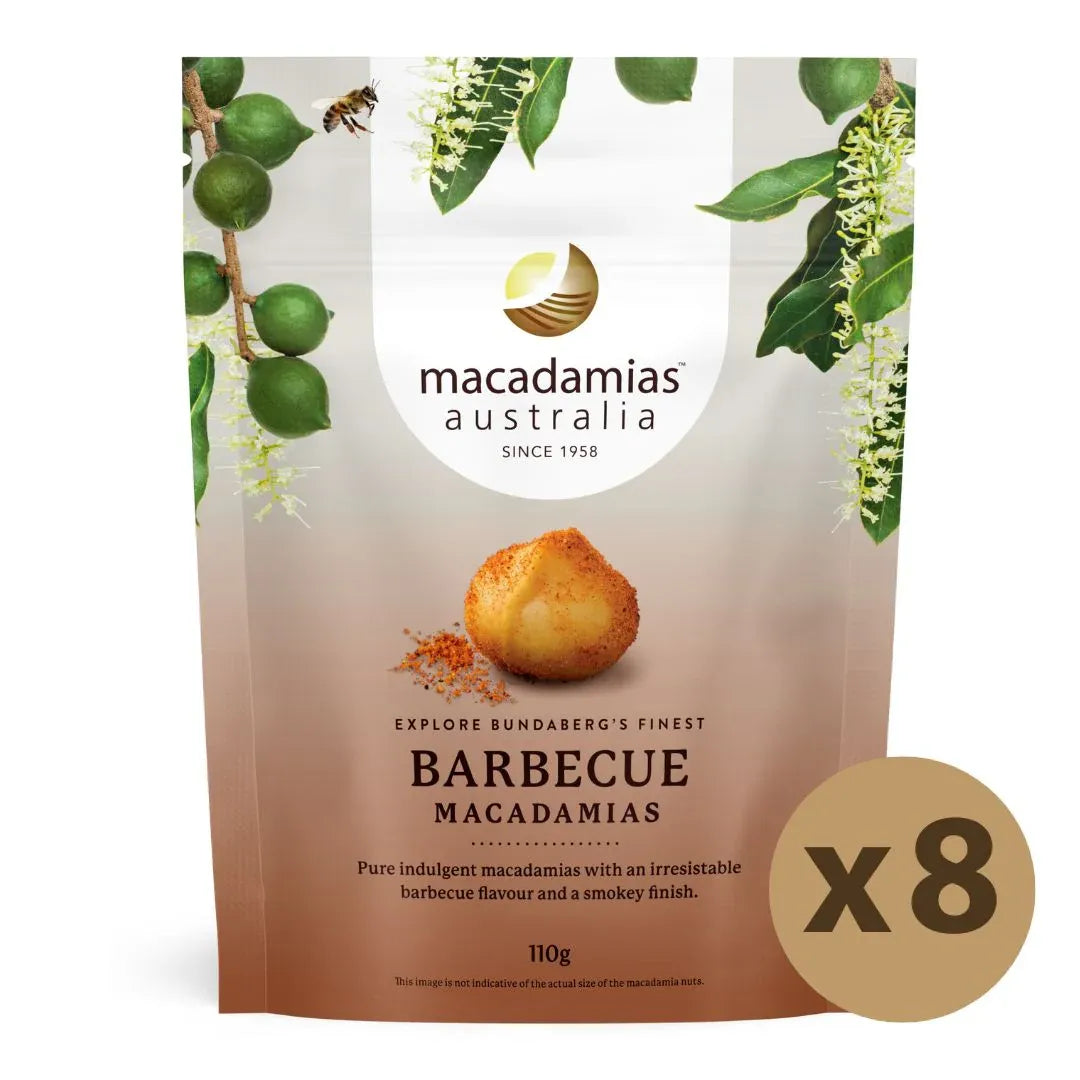 Our Barbecue Macadamias are the perfect fusion of buttery, crunchy macadamia nuts and bold smoky barbecue seasoning. Each nut is roasted to perfection and coated in a savory blend of spices that deliver a mouthwatering balance of smokiness, sweetness, and gentle heat. Ideal for entertaining, gifting, or enjoying as a wholesome snack, they bring a gourmet twist to classic barbecue flavor.