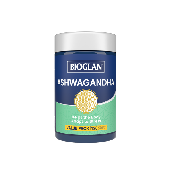 Bioglan Ashwagandha 120s is a natural adaptogenic supplement formulated to help the body manage stress, support emotional balance, and maintain energy levels. Ashwagandha, also known as Withania somnifera, has been treasured in Ayurvedic tradition for centuries for its ability to promote calm, resilience, and vitality. Taken regularly, it may assist with reducing fatigue, encouraging relaxation, and supporting focus, making it an ideal daily companion for those managing busy or stressful lifestyles. With 120 capsules per pack, this product offers a long-lasting supply of high-quality herbal support in a convenient and easy-to-take form.