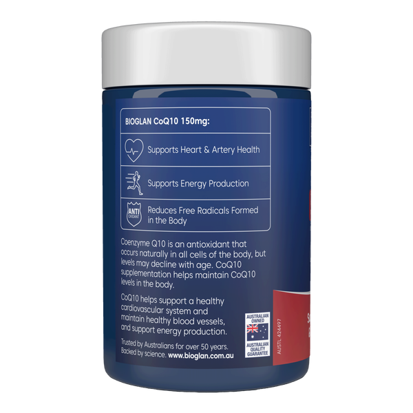Bioglan CoQ10 150mg 150s is a high-strength supplement designed to support energy production, cardiovascular function, and overall vitality. Coenzyme Q10 (ubiquinone) is naturally present in every cell of the body, where it plays a key role in generating cellular energy. Levels of CoQ10 can decline with age, stress, or certain lifestyle factors, which may affect heart health and energy levels. This 150mg formulation delivers a potent daily dose to help reduce fatigue, maintain cardiovascular wellbeing, and provide powerful antioxidant protection. With 150 capsules per pack, Bioglan CoQ10 offers a long-lasting supply for consistent support of energy and heart health.