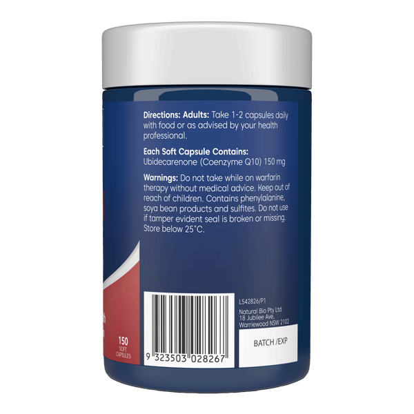 Each capsule provides approximately 4–6 kcal of energy, with around 0.5 g of fat, of which 0.1 g is saturated. Protein, carbohydrate, sugar, fibre, and salt are negligible. The active nutrient is Coenzyme Q10, delivering 150 mg per capsule in an oil-based formulation that supports absorption. This carefully balanced profile ensures a concentrated source of antioxidant protection and cellular energy support, all in a convenient, low-calorie format designed for daily use.