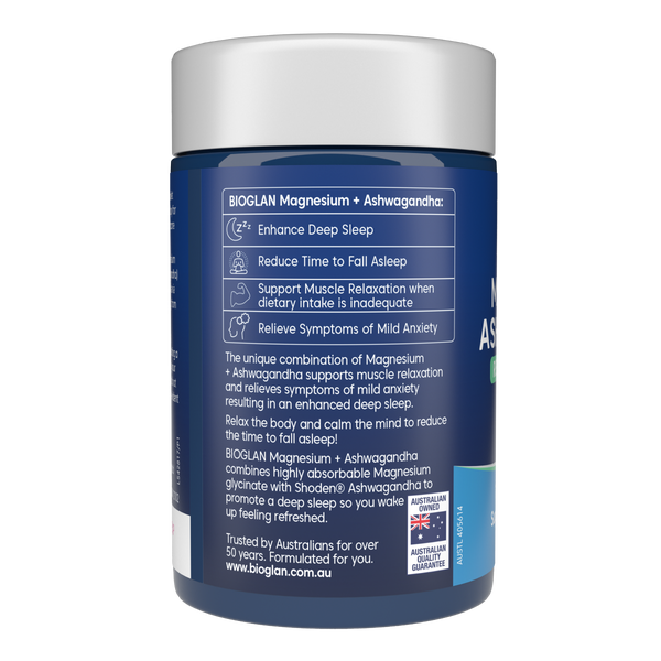 Bioglan Magnesium + Ashwagandha 60s is a carefully balanced supplement designed to support relaxation, energy, and overall wellbeing. Magnesium is an essential mineral that contributes to normal muscle function, energy metabolism, and the reduction of tiredness and fatigue. Ashwagandha, a traditional adaptogenic herb, is valued for its ability to help the body adapt to stress and promote calm balance. Together, they create a powerful duo for managing the demands of a busy lifestyle, supporting both body and mind. Easy to take in capsule form, this formula is ideal for those seeking natural support for stress management, energy, and relaxation.