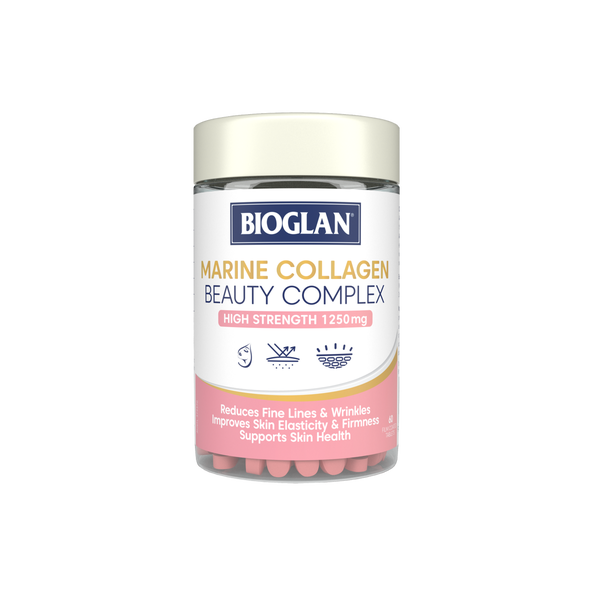 Bioglan Marine Collagen Beauty Complex 60s is a premium beauty supplement designed to support radiant skin, strong nails, and healthy hair from within. Formulated with high-quality hydrolysed marine collagen, this complex provides the essential building blocks for skin elasticity and firmness. The addition of Vitamin C supports natural collagen production, while antioxidants like Vitamin E help protect against oxidative stress. Minerals such as zinc and selenium contribute to the maintenance of normal hair and nails, making this an all-in-one beauty solution. Taken daily, these convenient capsules nourish your body from the inside out, helping you glow with confidence and vitality.
