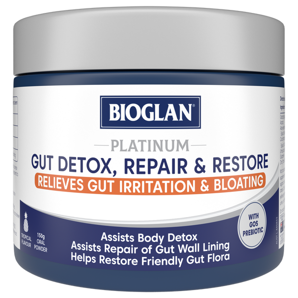 Bioglan Platinum Gut Detox Repair & Restore 150g is a premium gut health powder designed to support digestive cleansing, repair, and balance. Formulated with a blend of prebiotics, fibres, and soothing herbs, it helps gently detoxify the digestive tract, support healthy bowel regularity, and promote the repair of the gut lining. Added nutrients and plant-based compounds assist in restoring microbial balance, reducing bloating, and supporting nutrient absorption. With a convenient powder format that mixes easily into water, juice, or smoothies, Bioglan Platinum Gut Detox Repair & Restore offers a simple daily solution for anyone looking to reset their digestion and improve overall wellbeing.