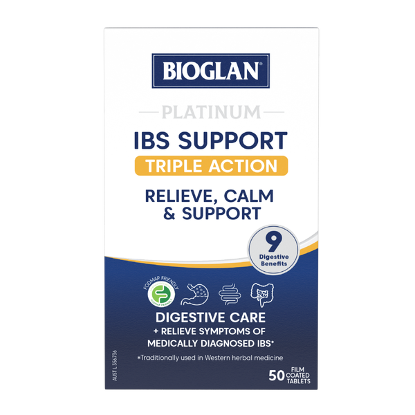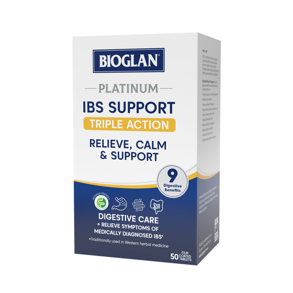 Bioglan Platinum IBS Support 50s is an advanced digestive health supplement formulated to help manage symptoms of irritable bowel syndrome (IBS) and promote daily gut comfort. This premium blend combines clinically researched probiotics with soothing herbal extracts and essential nutrients to help balance the gut microbiome, support regular bowel movements, and reduce bloating and digestive discomfort. With its dual action of restoring healthy bacteria and calming the digestive tract, Bioglan Platinum IBS Support is designed for those seeking reliable, targeted relief. Convenient one-a-day capsules make it easy to incorporate into your daily routine for long-lasting digestive balance and wellbeing.