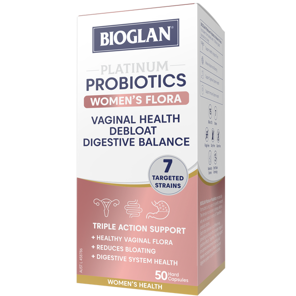 Bioglan Platinum Probiotics Women’s Flora 50s is a targeted probiotic supplement designed to support women’s digestive, immune, and intimate health. Formulated with a premium blend of probiotic strains, this product helps balance the gut microbiome while also supporting vaginal flora, promoting overall wellbeing from the inside out. Daily use may assist with reducing bloating, supporting digestion, and maintaining natural defences. With carefully selected strains backed by scientific research, Bioglan Platinum Probiotics Women’s Flora is tailored specifically for women’s needs, making it the perfect choice for those seeking balanced digestive health, immune protection, and intimate care in one convenient daily capsule.