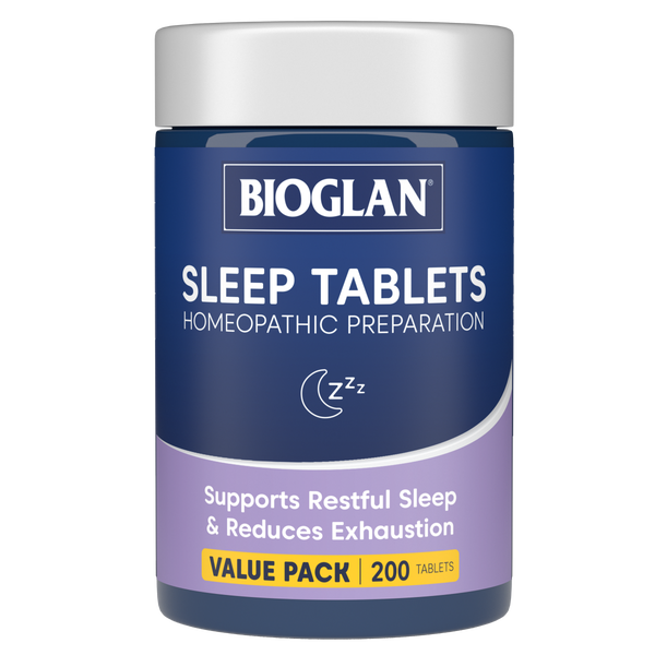 Bioglan Sleep Tablets 200s is a gentle and effective supplement designed to support restful and restorative sleep. Formulated with a blend of natural herbs and nutrients, this sleep aid helps calm the mind, relax the body, and encourage healthy sleep patterns without causing grogginess the next day. Valerian root and passionflower extracts work together to ease tension and promote relaxation, while magnesium supports normal nervous system function. With 200 tablets per pack, this long-lasting supply provides convenient nightly support for those experiencing occasional sleeplessness, restlessness, or stress. Bioglan Sleep Tablets are the natural way to wake up feeling refreshed and revitalised.