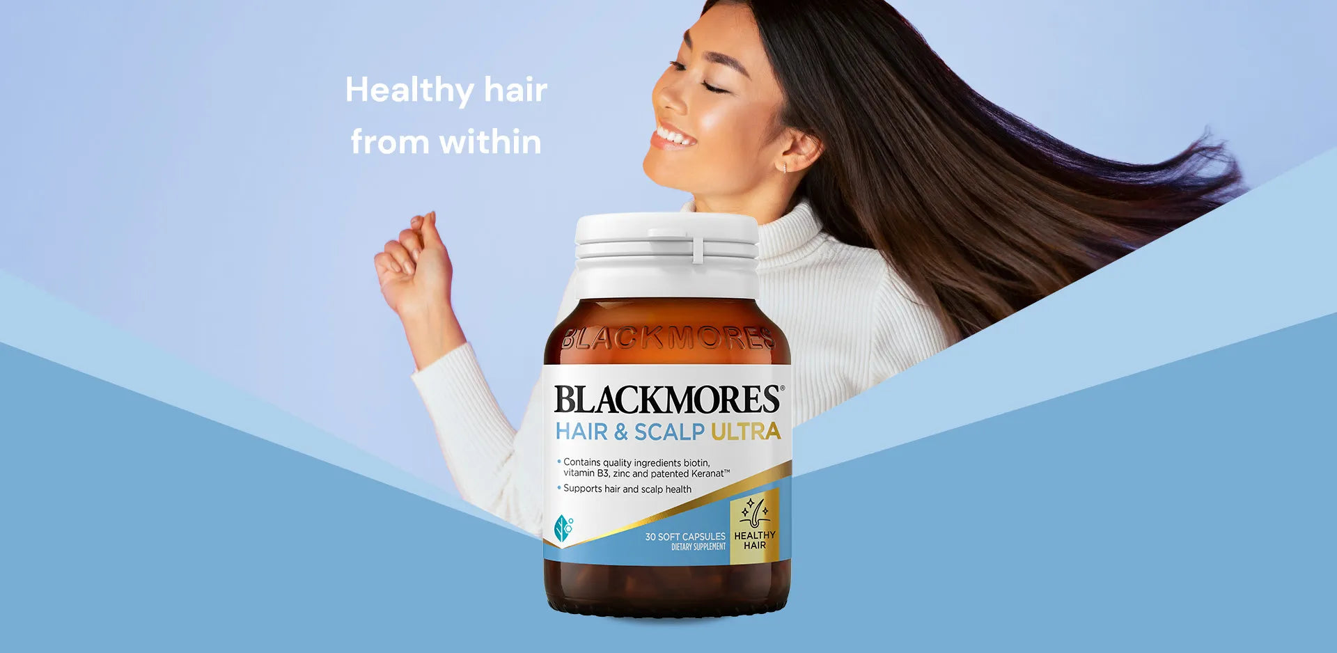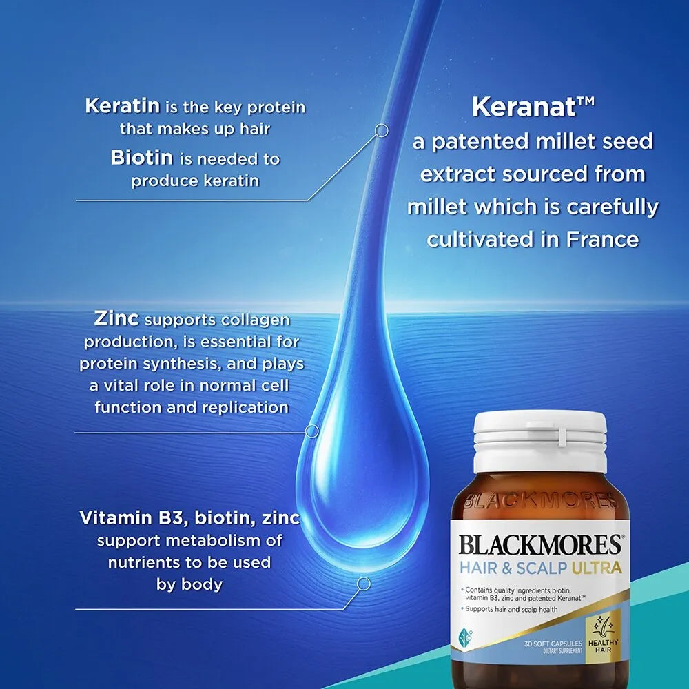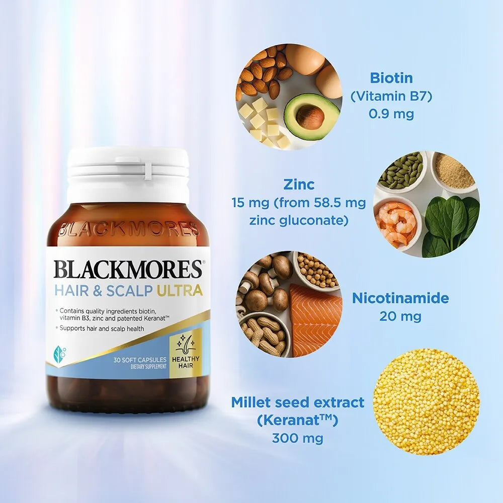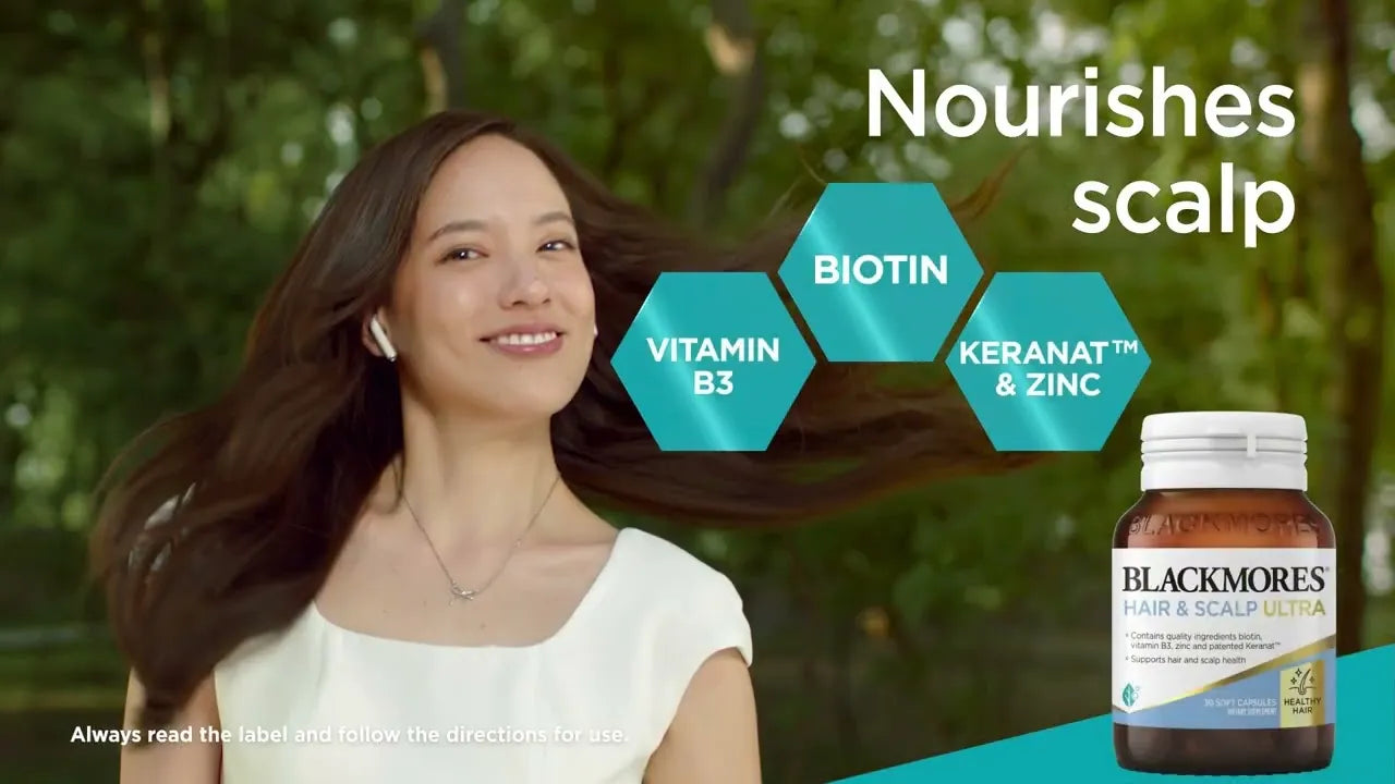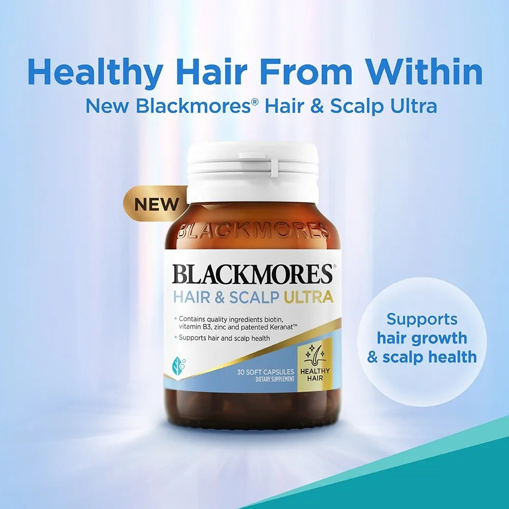 Blackmores Hair Growth & Scalp Ultra supports hair care from the inside out, providing nourishment for healthy hair and a healthy scalp.