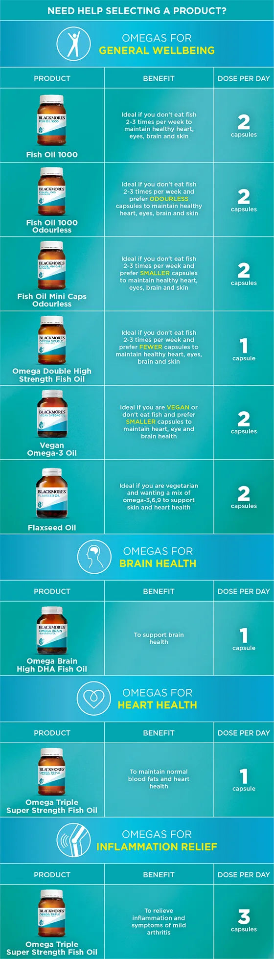 *Blackmores standard fish oil capsule contains 180 mg EPA and 120 mg DHA