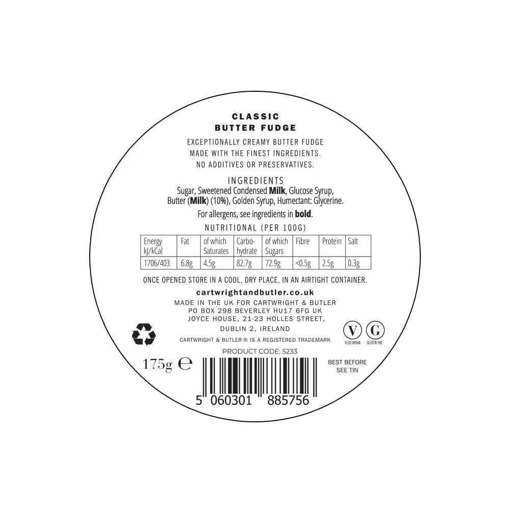 Cartwright & Butler Butter Fudge Tin 175g