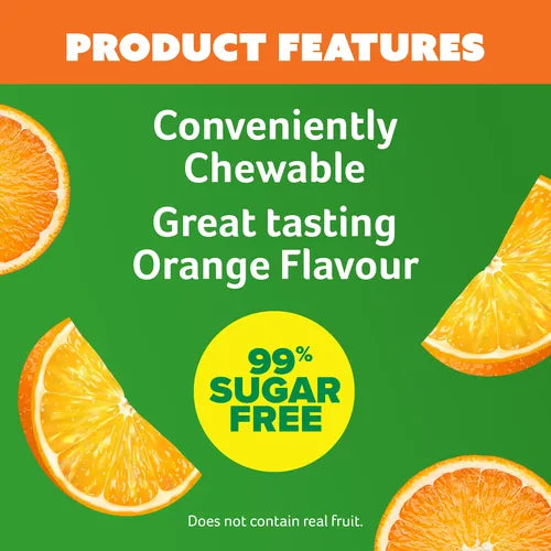 All this in one great-tasting, orange-flavoured chewable that’s 99% sugar free.
