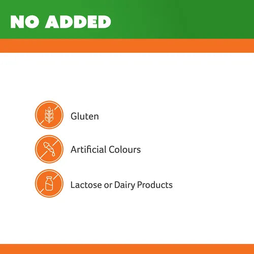 No added gluten, lactose, artificial colours or dairy products. Does not contain real fruit.