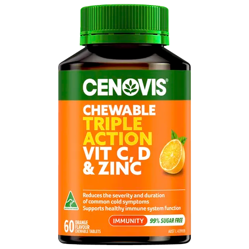 Not all heroes wear capes. Cenovis®Chewable Triple Action Vit C, D & Zinc combines Vitamin C, Vitamin D and Zinc to support healthy immune system function to help fight illness all year round.