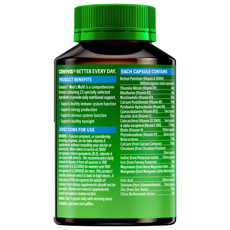 • Cenovis® Men’s Multi packs key nutrients into one daily tablet to support your energy production and healthy immune system function – for those with a hectic lifestyle.