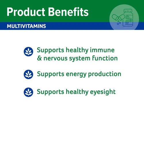 • Our men’s multivitamin formula delivers nutritional support in a convenient once-daily dose. Wellness support that fits into your life – not the other way around.