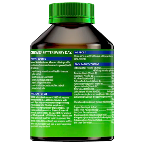 • Cenovis® Multivitamin and Minerals packs in key nutrients like Vitamin C, B vitamins, Vitamin D3, Iron and Zinc to support energy production, healthy immune system function and overall general wellbeing.