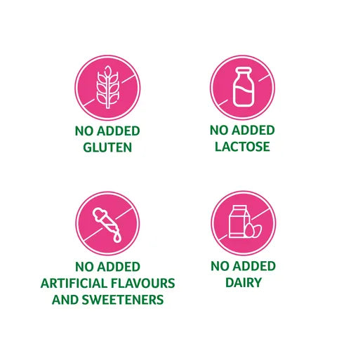 No added gluten, lactose, artificial flavours, artificial sweeteners or dairy products.