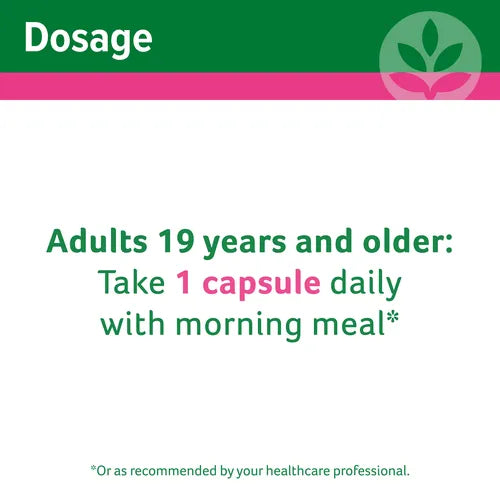 Adults 19 years and older: take 1 capsule daily with morning meal or as advised by your healthcare professional.