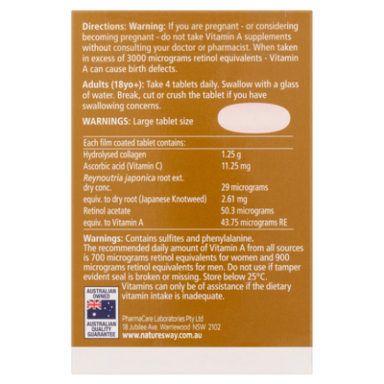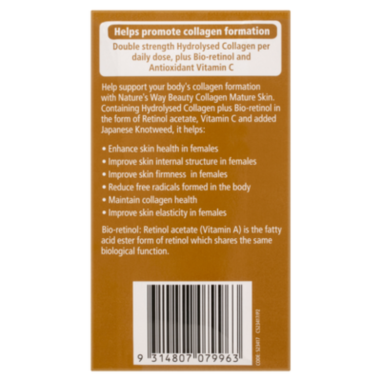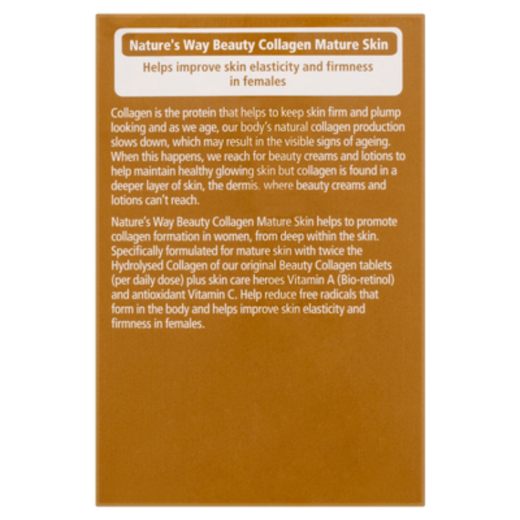 Each serving of Collagen Mature Skin 120 Tablets delivers a rich supply of collagen peptides that help replenish declining natural collagen levels associated with aging. Vitamin C boosts collagen production, hyaluronic acid supports skin hydration, and antioxidants like Vitamin E protect against oxidative stress. Together, these ingredients work in harmony to reduce visible signs of aging, improve skin texture, and promote overall skin vitality, giving you a youthful, healthy glow from within.