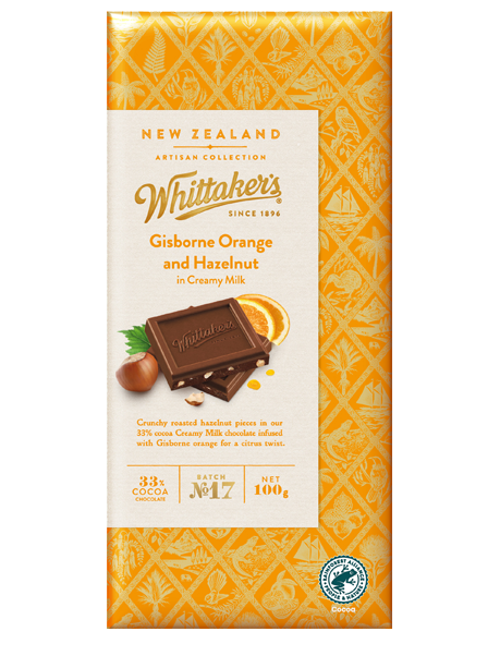 Gisborne Orange & Hazelnut 100g provides around 520–540 calories, combining the richness of chocolate with the natural crunch of hazelnuts and a refreshing citrus lift. It offers carbohydrates for energy, natural fats from cocoa and hazelnuts, and a fruity zest that enhances every bite.