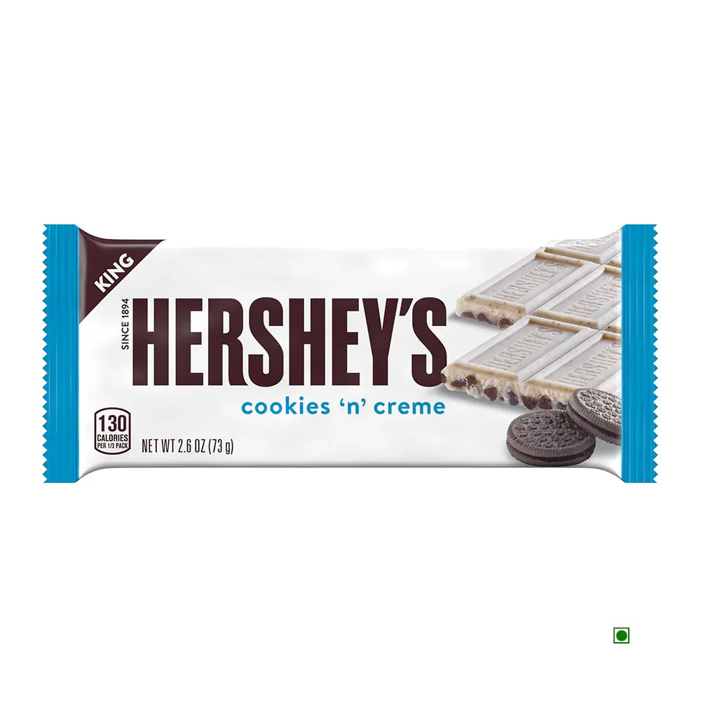 Experience the perfect blend of creamy white chocolate and crunchy chocolate cookie bits with Hershey’s Cookies ’n’ Creme Bar. Every bite delivers a smooth, melt-in-your-mouth sweetness balanced with a delightful crunch, making it a favorite among chocolate lovers of all ages. Packed in a convenient 73g bar, it’s perfect for sharing, gifting, or enjoying as an indulgent snack anytime.