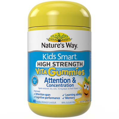 Nature's Way Kids Smart High Strength Vita Gummies Attention & Concentration, supports your child's focus, memory and learning ability with our scientifically backed formula.