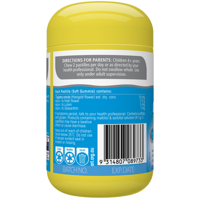 Tagetes erecta ( Marigold flower) ext dry. conc 10mg. Equiv. to fresh flower 1.12 g. Equiv. to Lutein 5mg. Equiv. to Zeaxanthin 1 mg