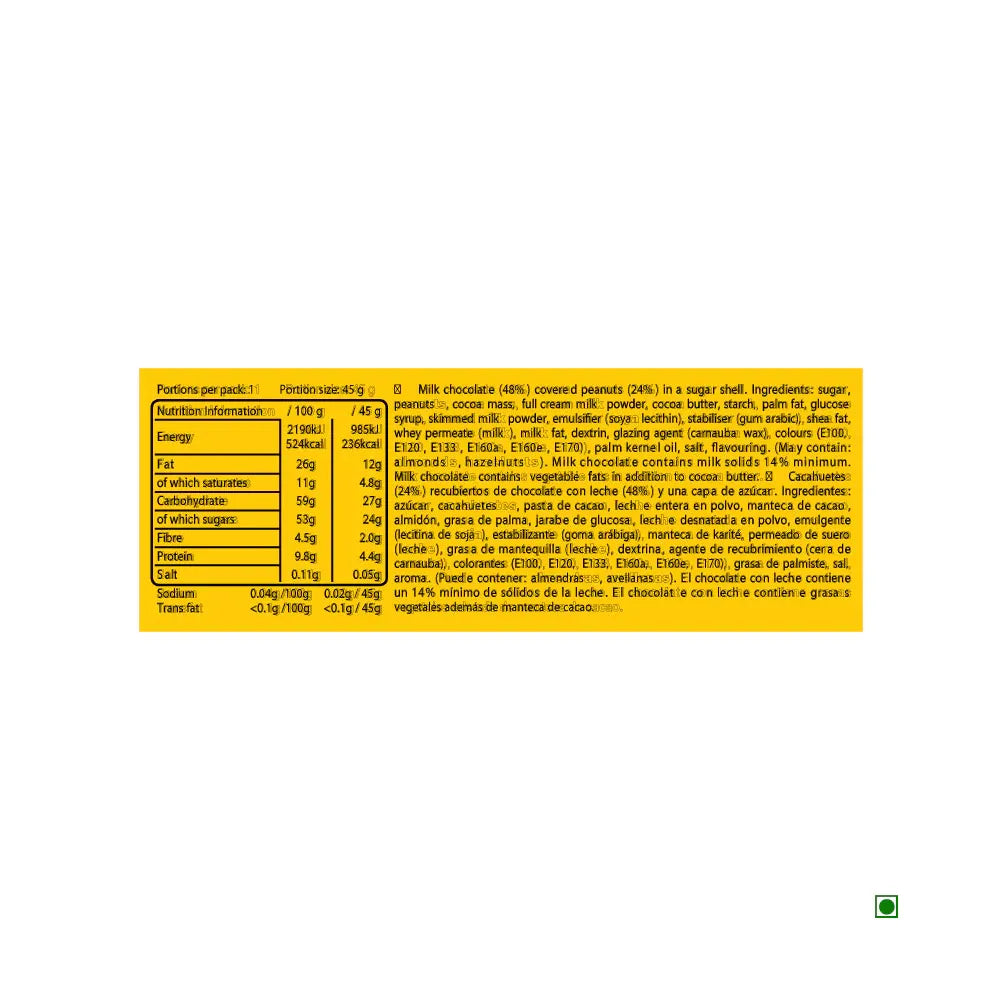 Enjoy the classic crunch of M&M’s Peanut, where roasted peanuts are coated in smooth milk chocolate and finished with a colourful candy shell. This 45g single pack is the perfect on-the-go snack—fun, crunchy, and delicious in every bite.