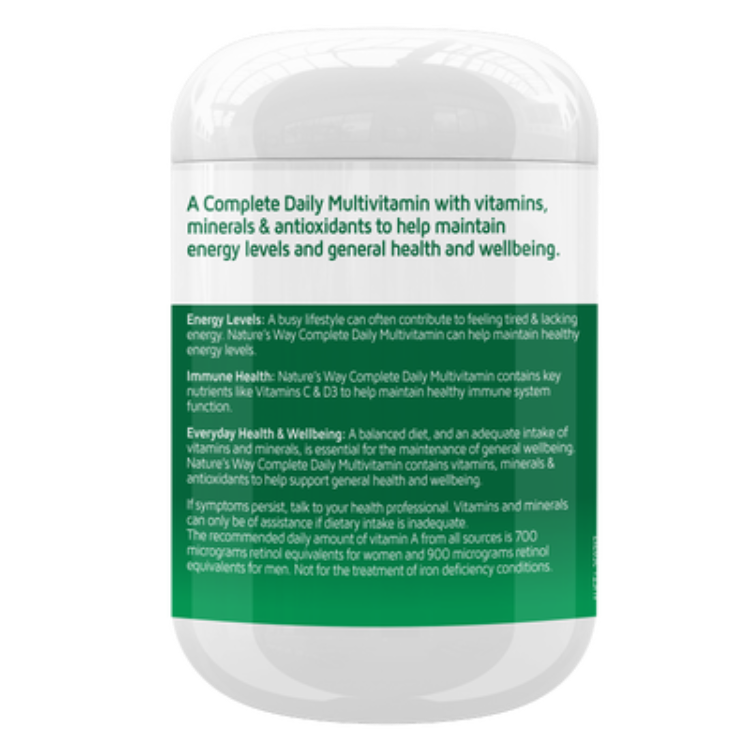 Fuel your everyday health with Nature’s Way Complete Daily Multivitamin. Packed with essential vitamins and minerals, this comprehensive formula supports energy, immunity, heart health, and overall wellbeing. With 250 tablets, it provides a convenient, long-lasting solution for maintaining daily nutritional balance and vitality.