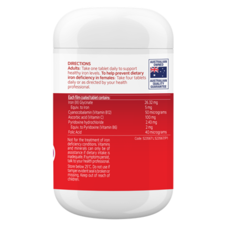 Each tablet delivers a bioavailable dose of iron to help combat tiredness, reduce fatigue, and support cognitive function. Combined with Vitamin C for enhanced absorption, this daily formula helps maintain healthy energy levels, supports normal immune function, and contributes to overall wellbeing.