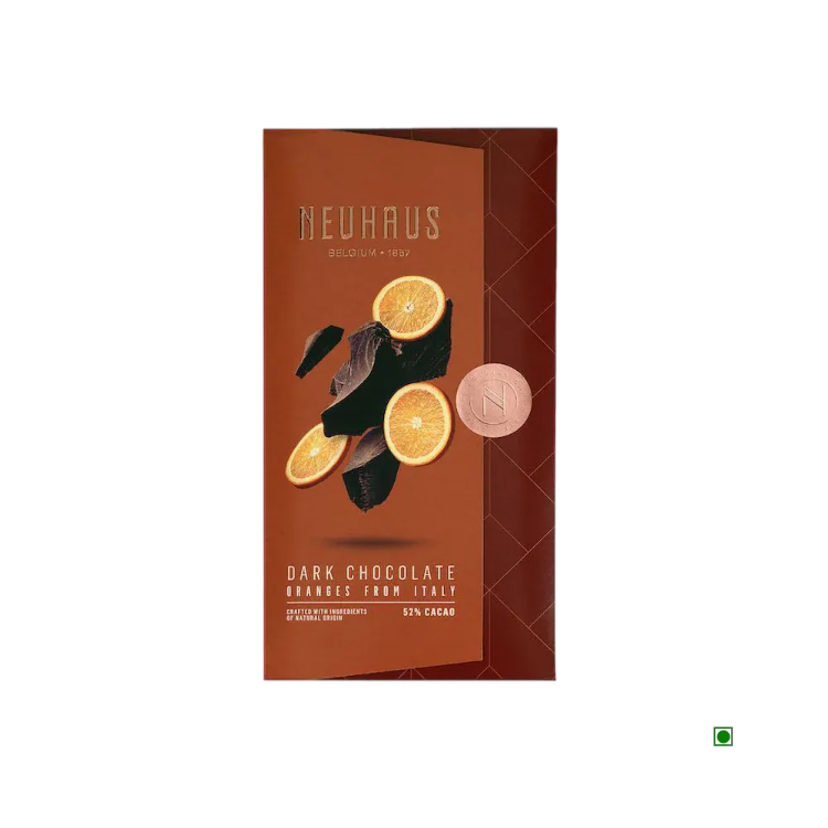 Delight in the perfect harmony of rich Belgian dark chocolate and the zesty brightness of orange with the Neuhaus Dark Orange Bar. Made with premium 54–70% cocoa, this bar combines smooth, intense dark chocolate with natural orange flavor, creating a vibrant and refreshing taste. Each bite offers a balance of bold cocoa depth and citrusy sweetness, making it a timeless indulgence for chocolate lovers who enjoy a touch of fruitiness.