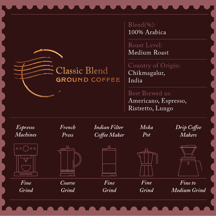 100% Pure Ground Coffee (Arabica & Robusta Blend).