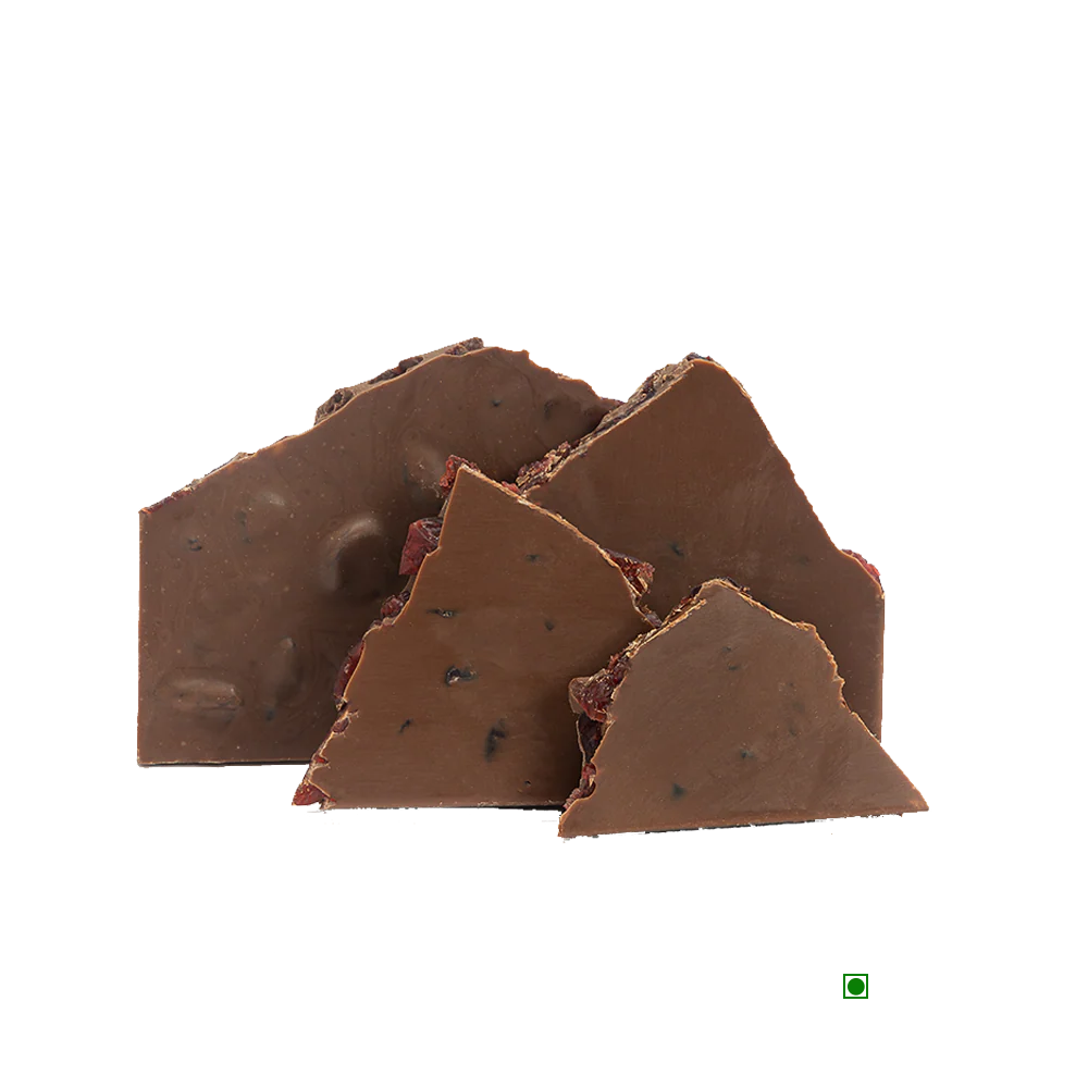MILK CHOCOLATE(SUGAR, COCOA BUTTER, MILK SOLIDS, COCOA MASS, EMULSIFIERSOYA LECITHIN INS322, VANILLIN), DRY CRANBERRY.