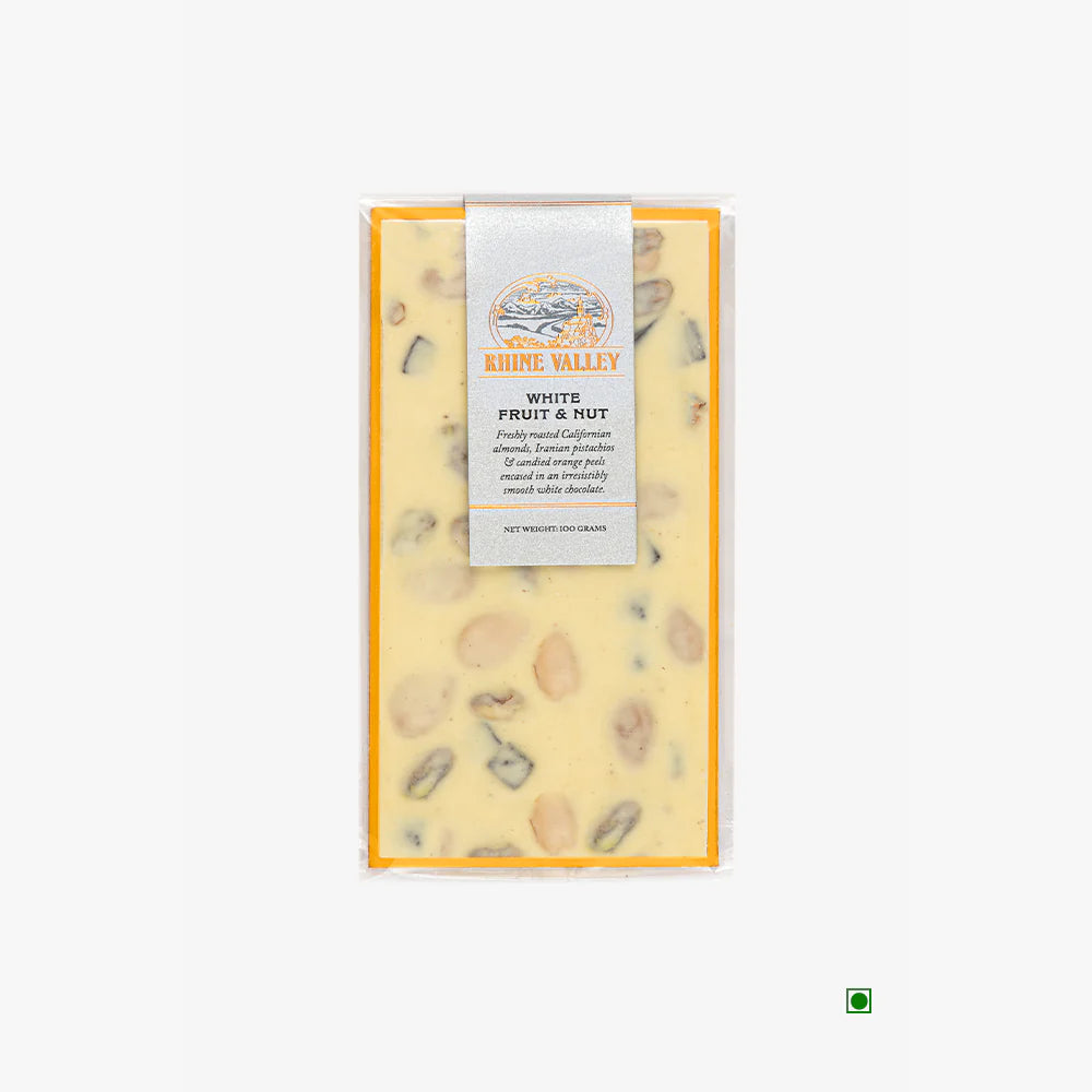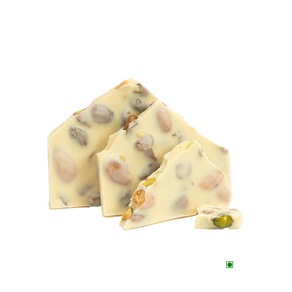 Freshly roasted Californian almonds, Iranian pistachios & candied orange peels encased in an irresistibly smooth white chocolate.
