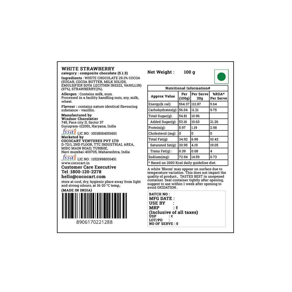 Approx Value per 100g Energy 559.9 kcal carbohydrate 56.54 g total sugar 52.06 g added sugar 52.06 g protein 5.95 g cholesterol 0 mg total fat 34.2 g saturated fat 20.52 g mufa 10.83 g pufa 1.14 g sodium 71.44 mg trans fat 0.38 g dietary fibre 0.75 g unsaturated fat 13.3 g