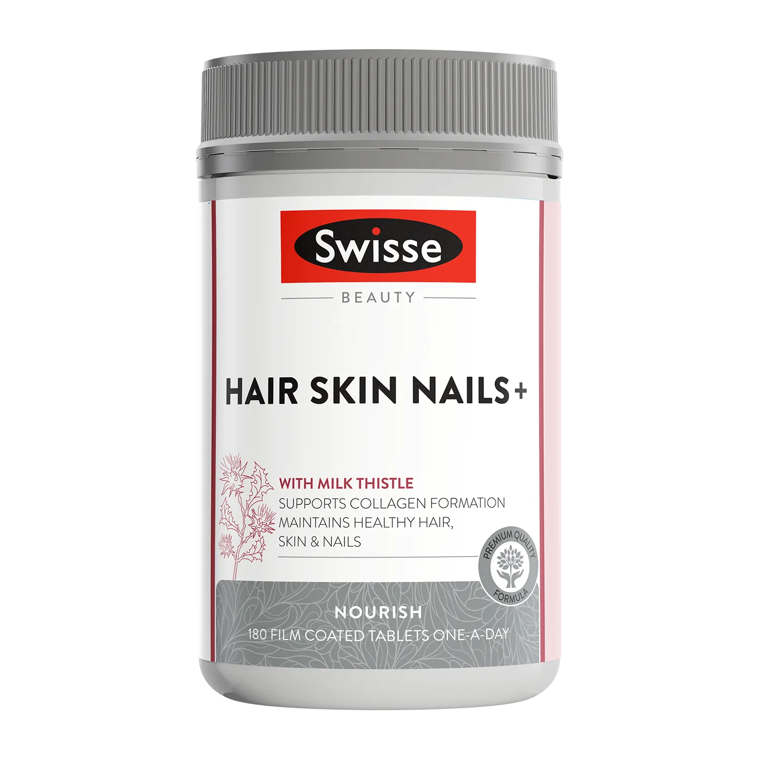 Transform your beauty routine with Swisse Beauty Hair Skin Nails+. One of our beauty bestsellers, this supplement is packed with nutrients like biotin, silica, zinc, and vitamin C. Biotin maintains strong nails, reducing breakage and splitting and supports healthy hair. Silica supports connective tissue health, while vitamin C maintains collagen production, skin firmness and healthy radiant skin. The inclusion of zinc adds extra richness to maintain wound healing and skin health. Every tablet of Swisse Beauty Hair Skin Nails+ is a step towards embracing your beauty from within.