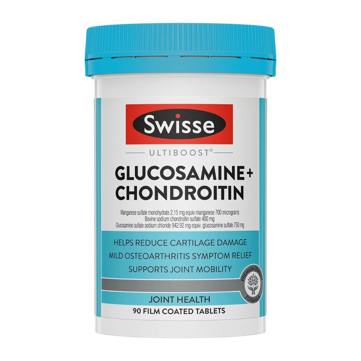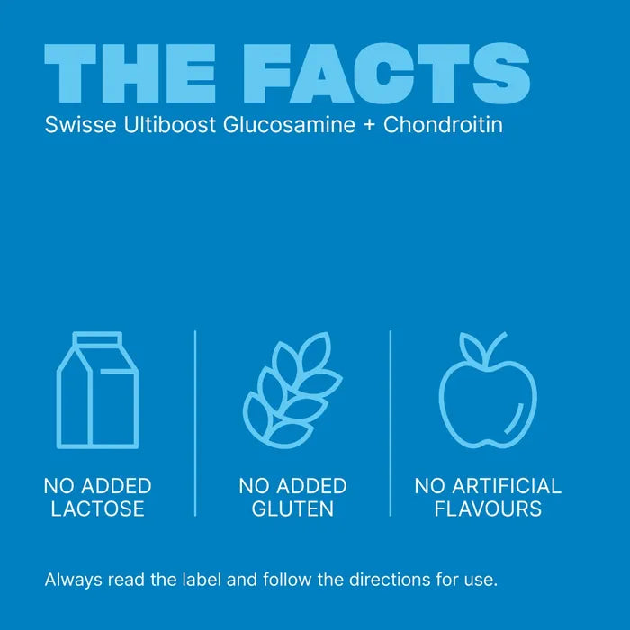 Swisse Ultiboost Glucosamine + Chondroitin is a daily supplement formulated to support joint health. Hero ingredient glucosamine sulfate helps support joint cartilage health, joint mobility and reduce mild osteoarthritis symptoms. Another included ingredient is manganese, a key mineral to support bone health. Swisse Ultiboost Glucosamine + Chondroitin is deal for adults looking to reduce mild osteoarthritis symptoms and continue living an active, healthy lifestyle.