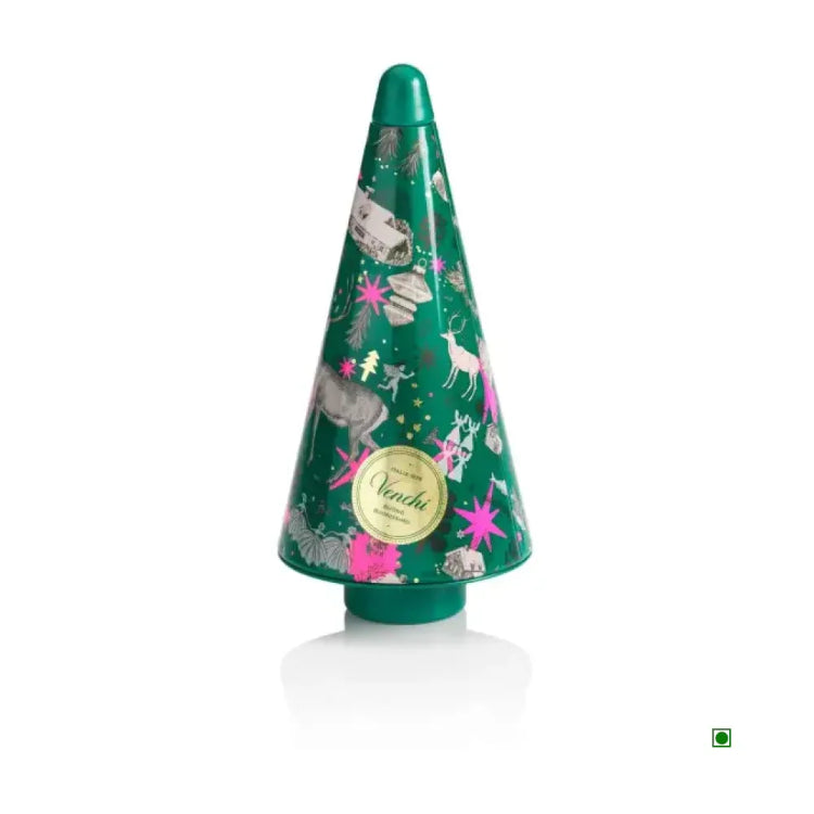 Celebrate the season with the Venchi Christmas Anna Higgie Pine Metal Tin (112g) — a beautifully designed festive collectible filled with an assortment of dark, caramel, and hazelnut pearls.